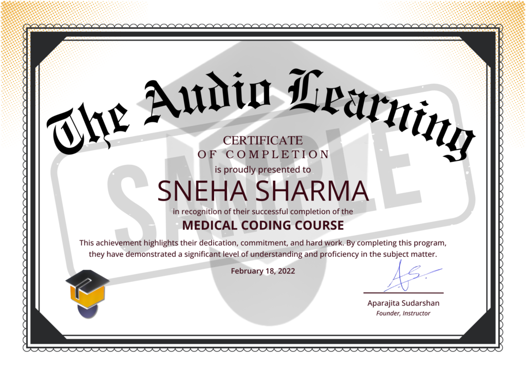 2 Earn Certificate – Post-successful completion of the course, earn The Audio Learning® Medical Coding Crash Course Certification. Post it on social media, get it framed, and increase your value in the industry.